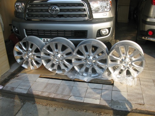 ПРОДАНО! Продам оригинальные диски R20 на Toyota Sequoia, сняты с 2008 года в эксплуатации были 2 года, состояние хорошее, цена 1,2 тыс. долл. (на фото один диск, остальные - такие же).
