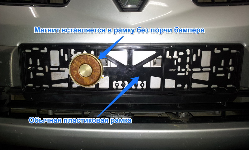 Купил магнит через интернет с доставкой. Сайта этого уже нет почему то. В комплект входил магнит,провода,реле,кнопка,рамка номерная пластиковая,инструкция ,пакетик с металлической стружкой и четыре металлических пластины 10х10. Сам бы установил если бы не реле(не знаю куда какой провод цеплять). Обратился к знакомому который шарит в электрике. Рамку оставил свою(металлическую). Снял номер,примерил куда лучше поставить магнит (какие цифры лучше закрыть),через табличку,сделал в бампере отверткой небольшую дырочку для провода(чтобы визуально не было вообще ничего видно),приложил магнит,прижал номером и зафиксировал. Дальше протянул за бампером провод (чтобы не было видно) к левой фаре. Решено было пустить питание от лампочки габарита.(дабы если забудешь магнит включенным не сел аккумулятор.). Там и поставили реле. От реле пустили провод в салон для кнопки. Кнопку спрятал в центральной консоли где подстаканники.Кнопку не фиксировал(если надо вытащил,если нет убрал под крышку). Получается если не включил габариты кнопка не работает а с габаритами кнопка работает. Пользуюсь и стружкой и пластинами.Правда и то и другое при отключении в движении магнита уже не вернешь. За поворотом на дороге ,как то стояли менты ,а я со стружкой,благо реакция у меня ниче, выключил и включил габариты. Проехал мимо них в сопровождении их взглядов. Прошу простить за орфографию.