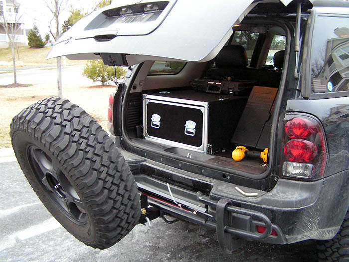 У меня же есть автобокс. Поэтому его на вверх, а запаску, при необходимости, назад на платформе. А ящик для других целей.
