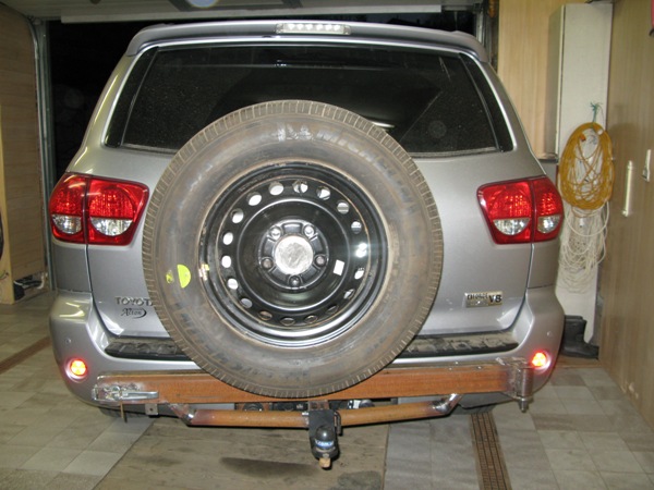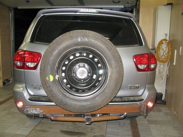 Последний вариант крепления запаски обкатал, доволен, о том, что весит запаска, вспоминаю, когда вижу в зеркало заднего вида верхушку номерного знака и все-е. Если хочу на нее посмотреть при остановке, не выходя из машины - включаю заднюю передачу и вижу ее на мониторе через камеру.