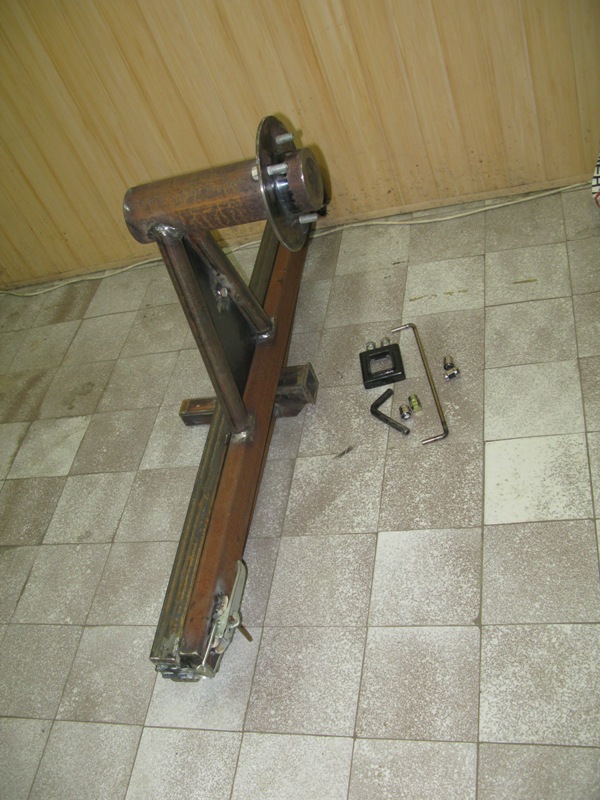 Решение замечательное. Особенно подойдет для путешествий в режиме длительных стоянок (один раз разгрузился, один раз загрузился) или ночевок в гостиницах. При динамичном путешествии (каждый день на новом месте) и тем более наличии нескольких детей достаточно дискомфортно. При разбивке лагеря с семьей из багажника достаешь %50 всякого скарба, а на след. день убираешь его. Поверьте намахаетесь. (Из личного. В квадрат заделал фаркоп, исключительно для буксировки,...ну мало ли че-гой, а через 4 стоянки, фаркоп ехал уже под сиденьем, а мои ноги были все в синяках от плясок вокруг этого друга.) Александр огромное спасибо за вариант "в квадрат и в сторону". Решение на мой взгляд оптимальное. (лево-право кому как нравится) Единственное ,мне кажется логичным, крепить стойку с колесом ближе к петле, а не к замку. (меньше динамические нагрузки) Себе буду делать ТАКУЮ, но из алюминия. Еще раз спасибо за идею.