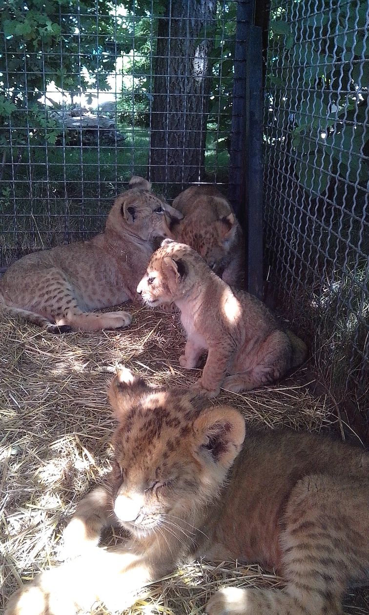 Звери есть звери, даже когда они маленькие. На фото моя дочка Анастасия, давно полюбила с ними играться (каждый раз когда приезжаем - ее не отвести от них, со "смотрящим" мы в хороших отношениях и он нас с радостью встречает). А для всех - взять львенка или тигренка на руки, сделать одно фото - 500 руб. Малыши (там их было четверо) как раз спали и самый старший рыком отгонял Настину руку, инстинкт сохранения заставлял ее убирать.