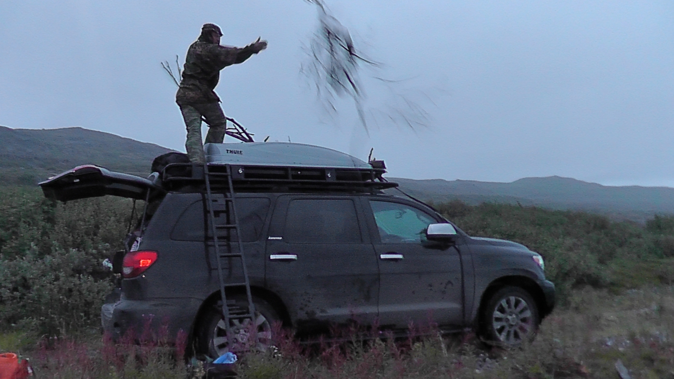 У меня вещей поменьше, но и багажника на крыше нет. Поэтому под машину идет вся туристическая мебель, канистры с водой, запаска ( если вторую взял) и прочий туристический скарб. Но такие ночевки для меня редкое исключение.