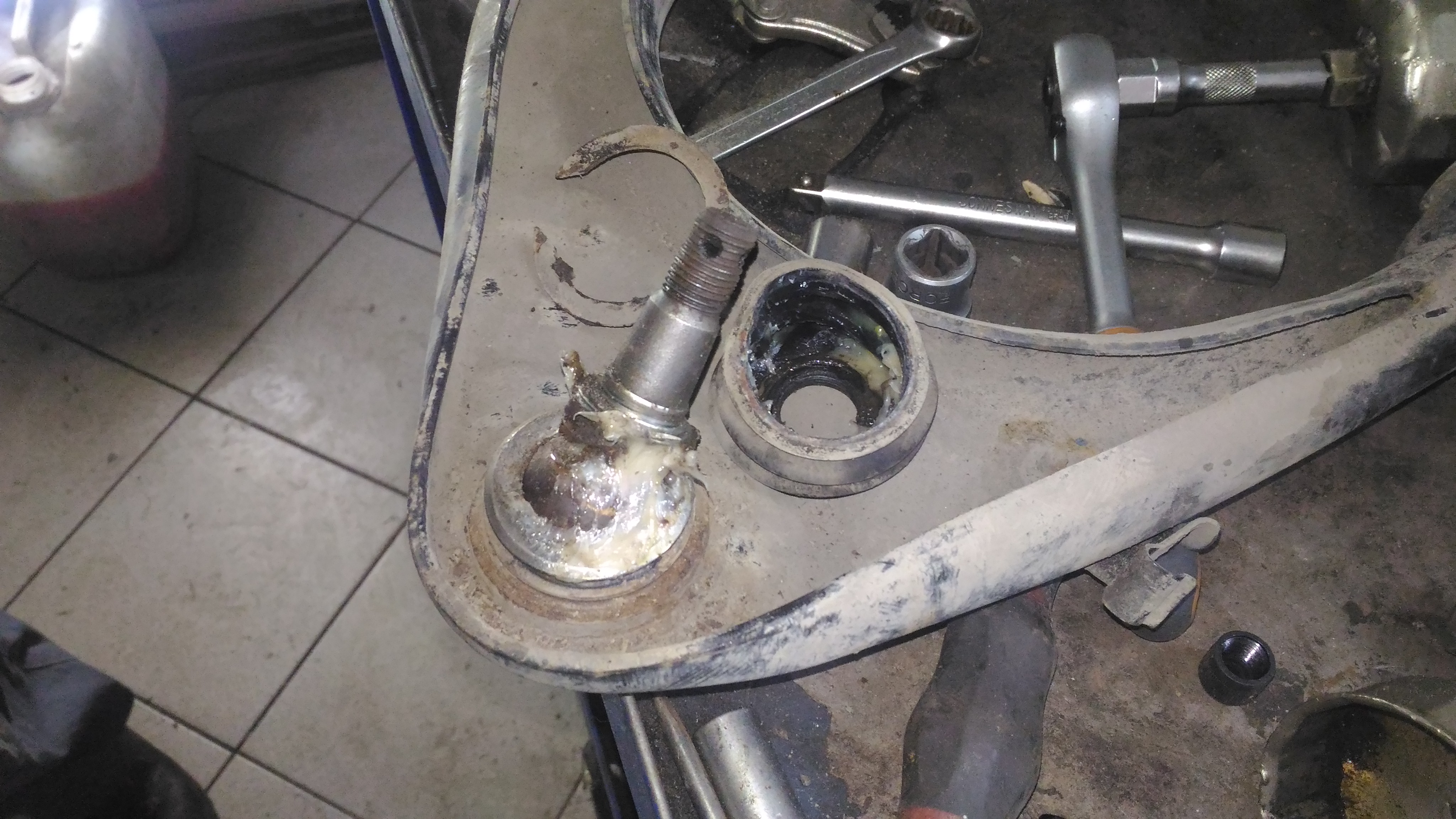 старая шаровая, видна ржавчина на шарнире, люфт ощутимый около 5 мм в вертикальной плоскости