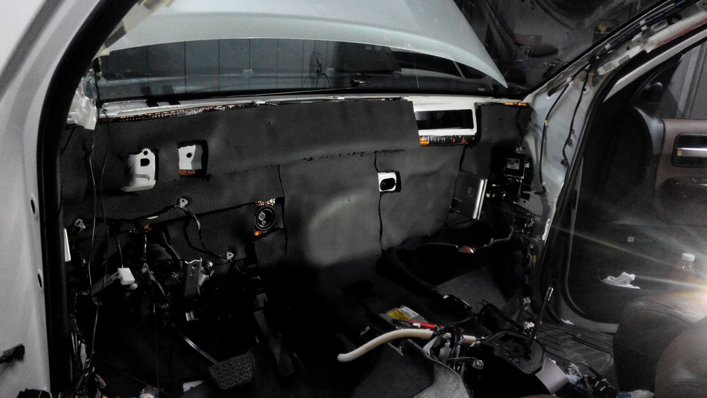 Обесшумил! Теперь автомобиль можно перенести в категорию люксовых внедорожников! Шум двигателя меньше чем в лексусе! Но самое неожиданное - намного лучше зазвучала музыка штатная и вообще пропал шум от передних колес! Вообще пропал! Но очень явно в салоне слышится теперь шум моторов проезжающих мимо машин и по моему гул или вой своего кардана! :D Доволен. Бюджет 300 баксов - работа и материалы. Время два дня. Перегородка, капот и все доступные места виброизолированы "БОМБОЙ 4мм" и вспененным каучуком 19мм, торпедо - вибро -2мм и бипластом 10мм, воздуховоды тоже бипластом. До этого машина была полностью обесшумлена кроме моторного отсека. Эфект был, по моему менее значителен чем теперь.