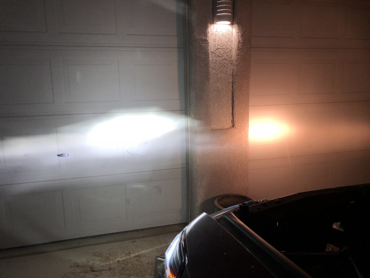 Дальний на стене. Слева LED - справа галоген