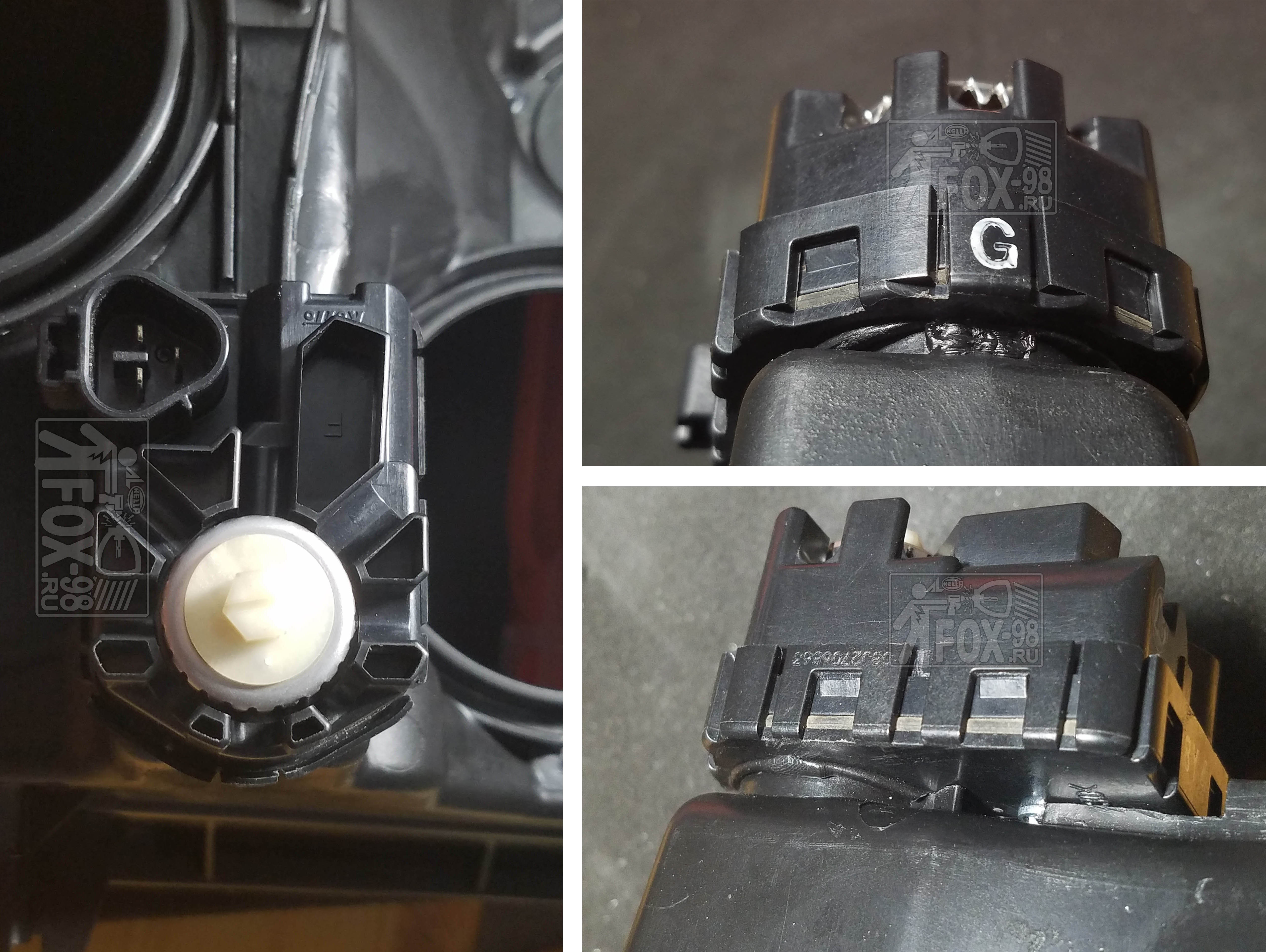 Снаружи фар действительно нет этой площадки, и после демонтажа регулировочного винта приходится подрезать весь ненужный пластик по всей плоскости прилегания моторчика, но внутри фары уже есть трёхзубая отливка под зацепы моторчика корректора.