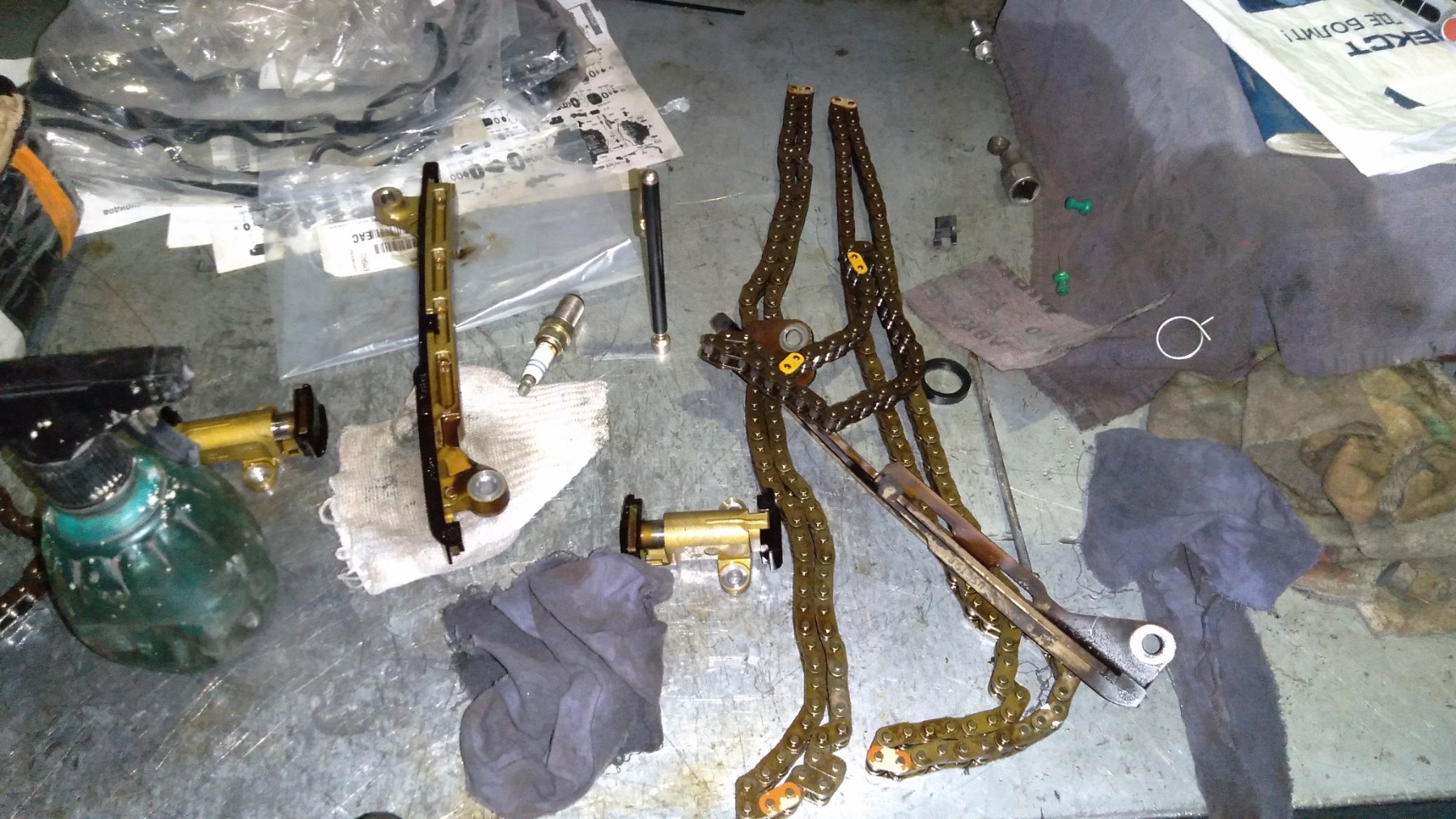 Разборка показала что оба натяжителя на левой башке работают не правильно. Все остальное можно не менять.
