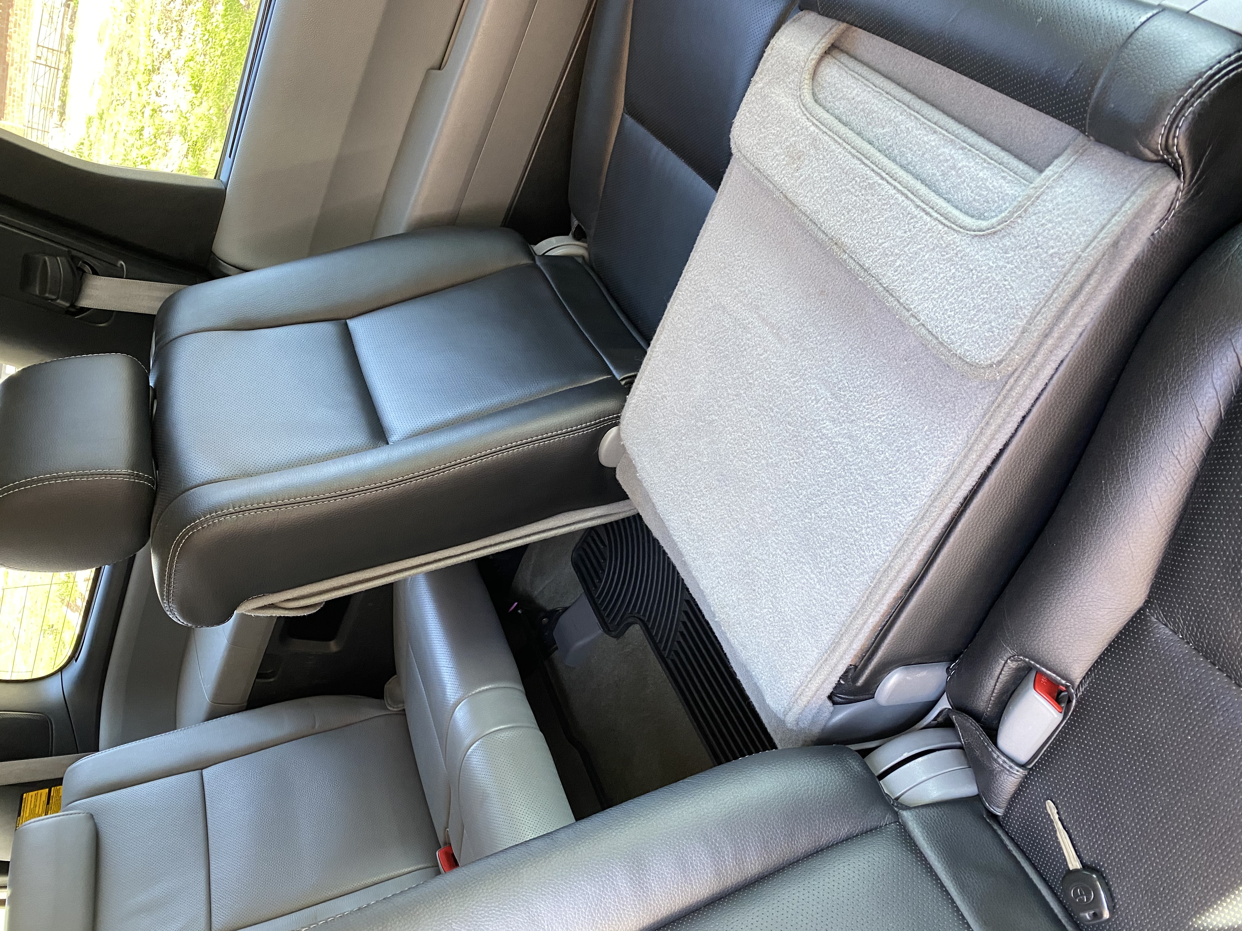 Но в итоге у меня второй ряд, пол под ним, и все элементы салона стоят штатные. Есть один косяк! У него почему-то кресла были чёрные!!! Перфорированные и кожа мягкая. Невстречал такого. Видно перешитые. У меня теперь второй ряд чёрный, а остальные серые. Я не заморачиваюсь, дети тоже.