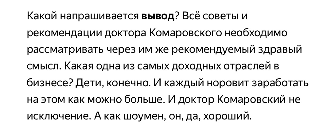 Последний абзац огромной статьи о докторе Комаровском
