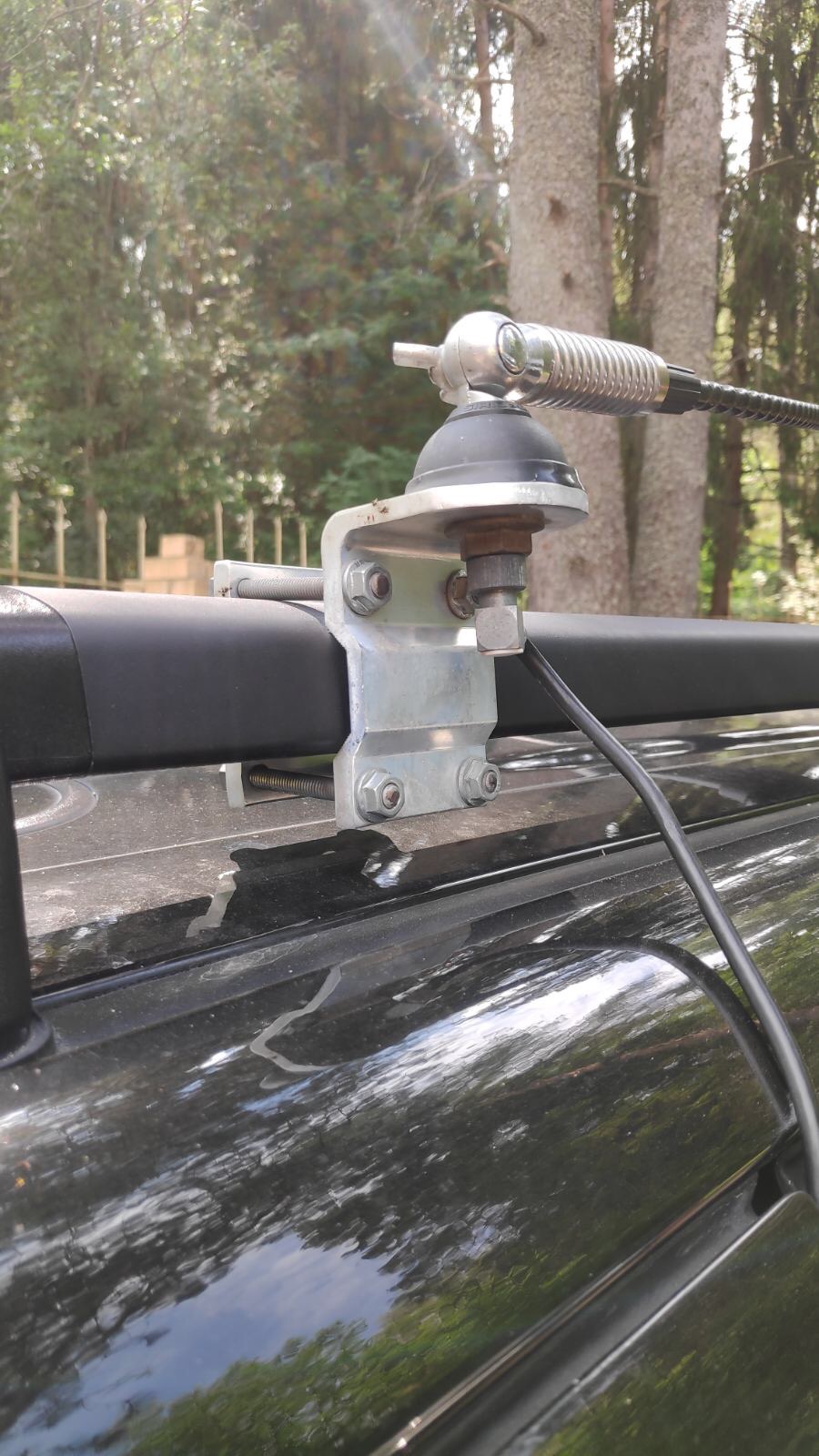 У меня антенна, коротыш, установлена на конце рейлинга, сбоку заднего крепления. Внутри рейлинга металлический уголок, закреплен в стандартное отверстие крепления рейлинга. Снаружи рейлинга, сбоку, второй, стандартный уголок крепления раций. На нем уже антенна закреплена. Рейлинг сбоку просверлен под болт и уголки жестко закреплены между собой, масса нормальная (фотки выше в теме). Получается нормальный противовес и дальность связи приемлемая.
