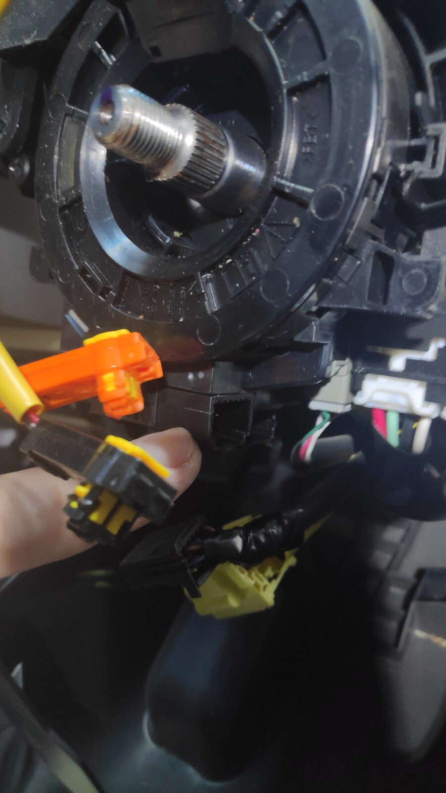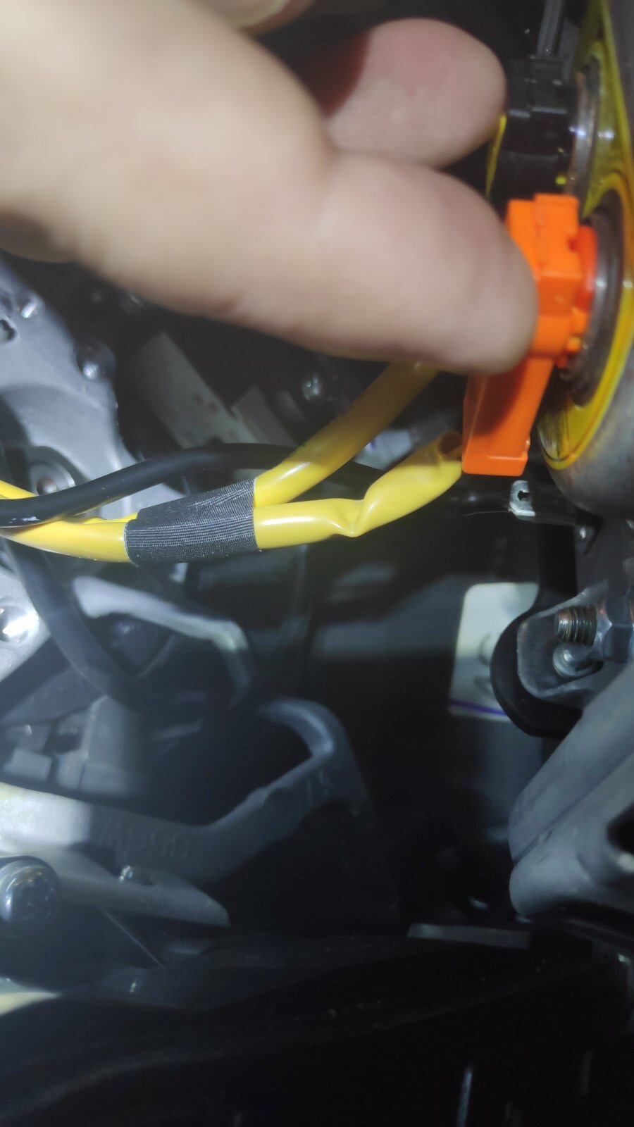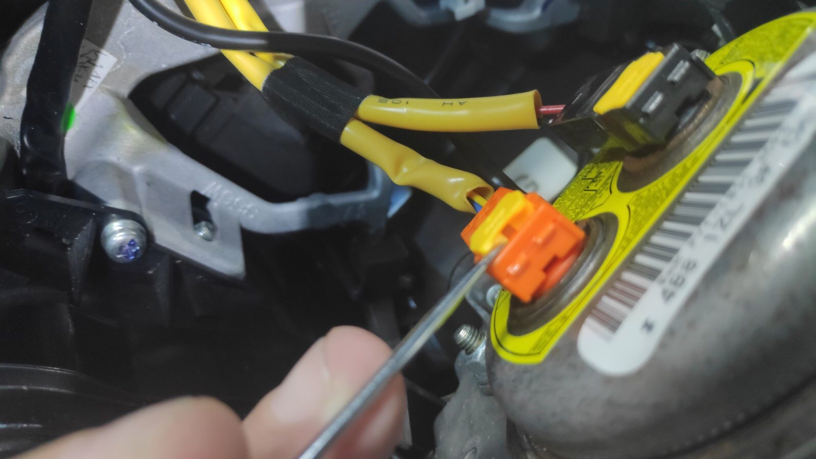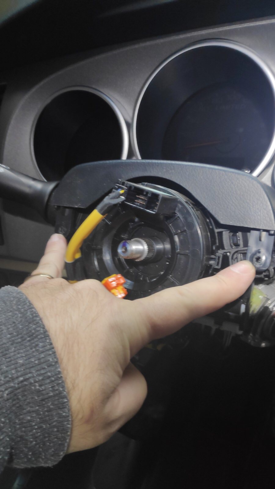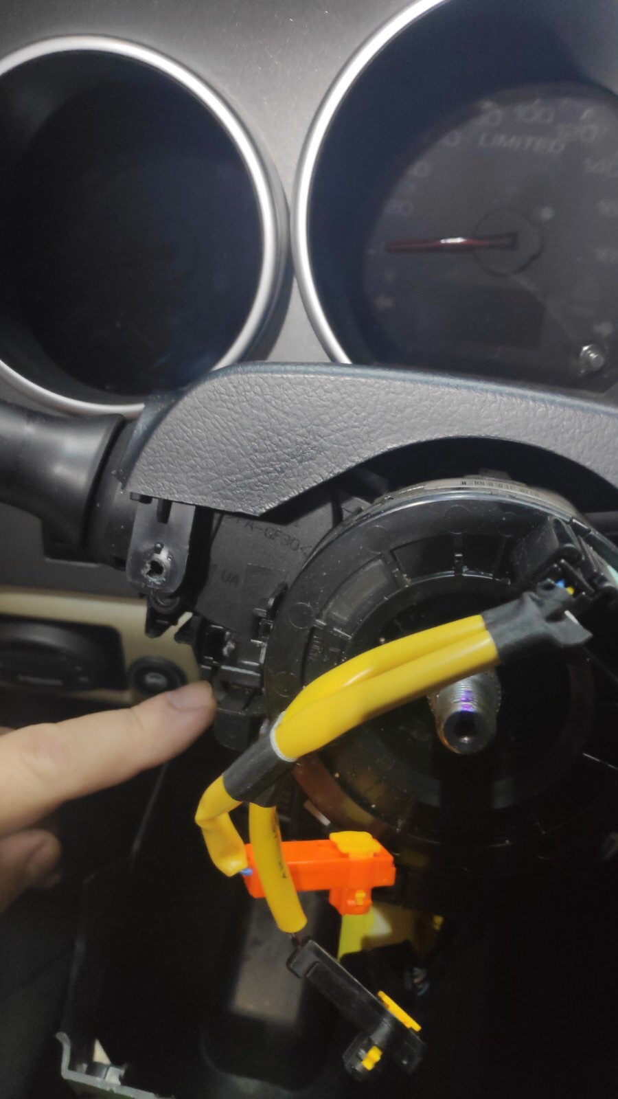 Обратите внимание на указательный палец и стрелки рядом с ним. Это правильное положение шлейфа. В противном случае вы его порвёте при повороте руля.