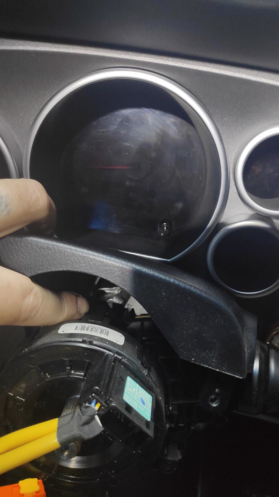 Далее откручиваем указанные распальцовкой винтики и располовиниваем обшивку рулевой колонки(как не буду описывать там и пионер справится).