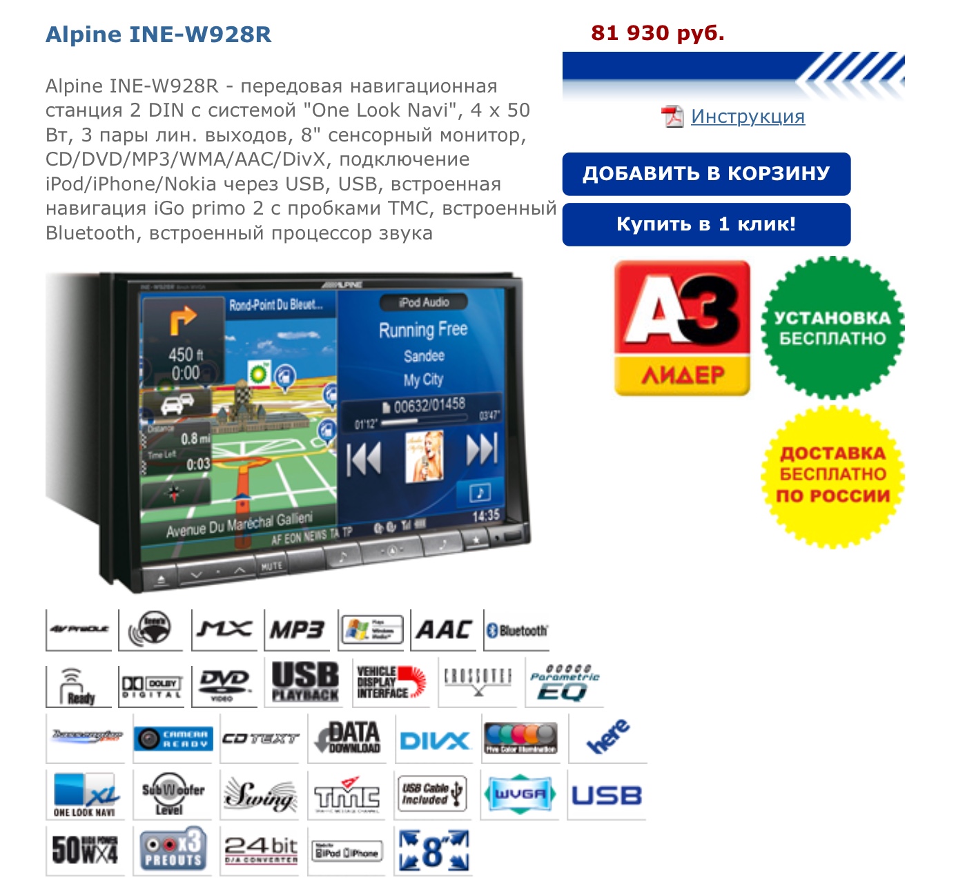Так же на продажу выставлено ГУ Alpine INE-W928R за 30 000р.