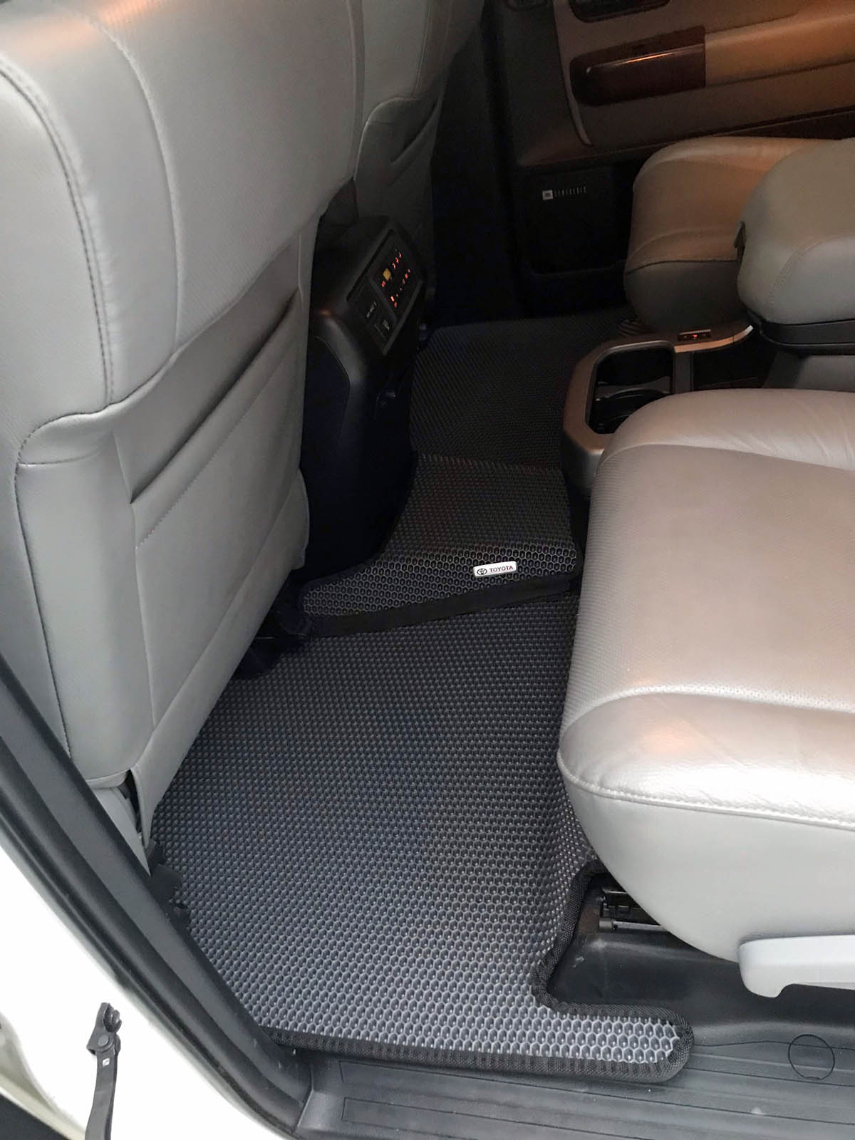 Плохо видно. У меня похожие ворсовые коврики на резиновой основе с надписью Toyota во всем авто, даже в багажнике. Авто в 2013 году привезено из Америки.