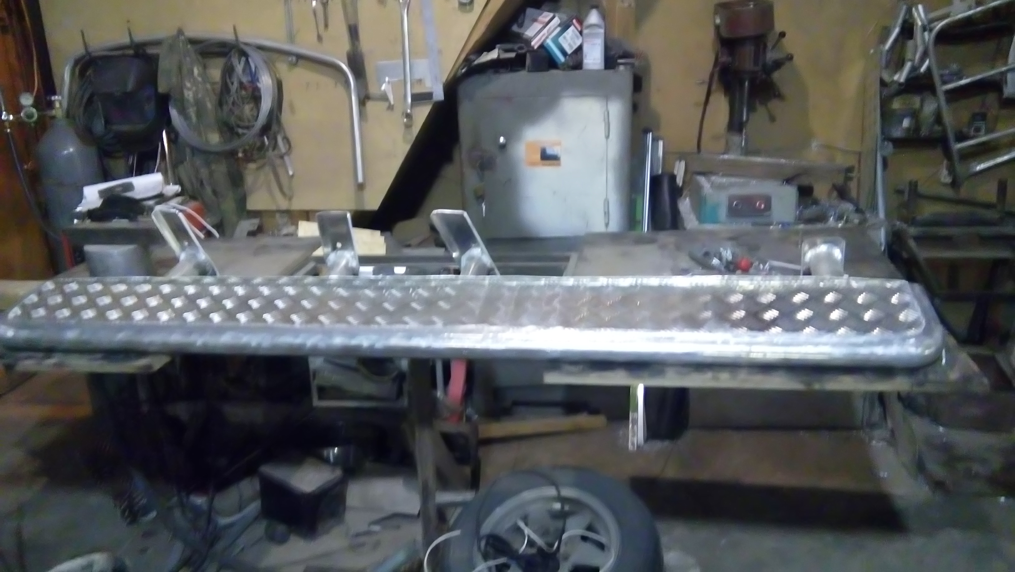 Решили эту задачу путем демонтажа штатных и установки силовых, алюминиевых(толстостенная труба АМГ-5. Вес изделия равен штатным). Монтируются к раме. Домкратить можно под них.