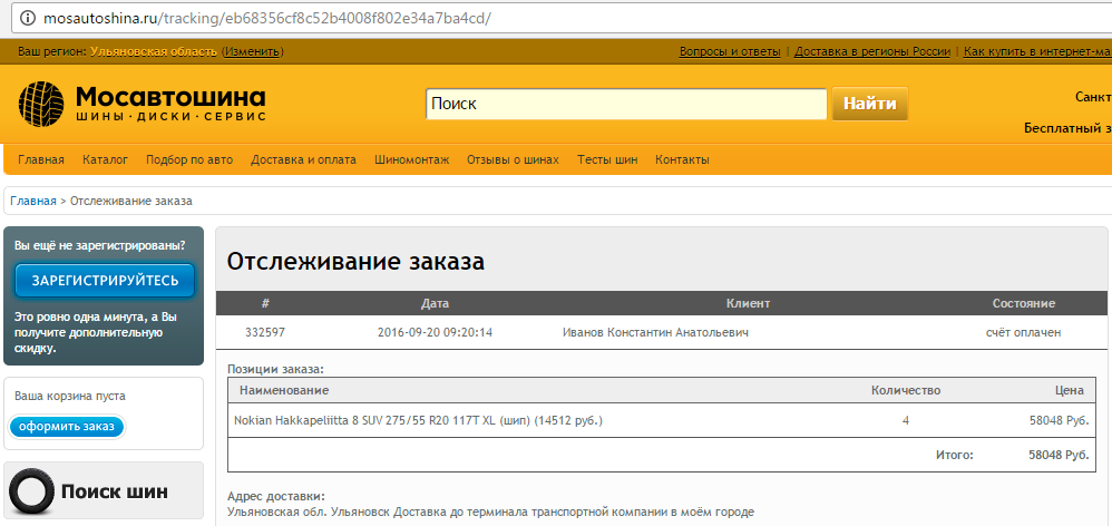 Где брал????? Ссылку.kostiksimb писал(а):Готовимся к зиме, купил со скидкой :D Nokian Hakkapeliitta 8 SUV 275/55 R20 117T XL (шип) (14512 руб.) везде по 15 и выше