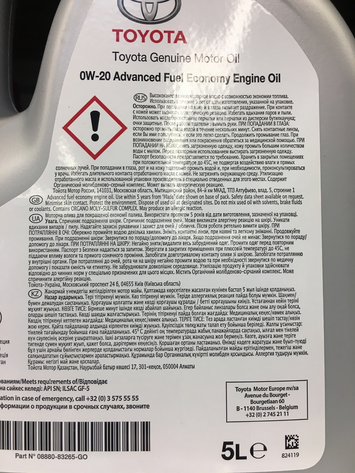 Я сейчас залил себе Unaited Gold 0W20 сингапурское масло, синтетика, как оилклуб пишет честное масло без выпиндрежных наворотов по очень хорошей цене 1900 за пятерку у нас. Проехал на нем 4000 мне нравится. Уровень пока стоит, движок работает мягко. А масло Тойота честно говоря не лучший вариант, да и тойота честно говоря масло не производит. Только наклейку свою клеит