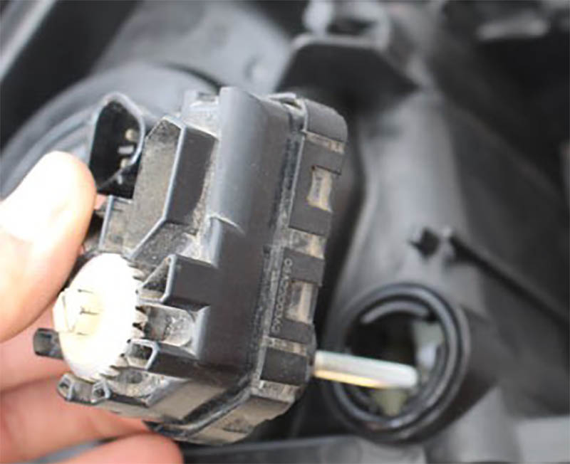 Снаружи фар действительно нет этой площадки, и после демонтажа регулировочного винта приходится подрезать весь ненужный пластик по всей плоскости прилегания моторчика, но внутри фары уже есть трёхзубая отливка под зацепы моторчика корректора.