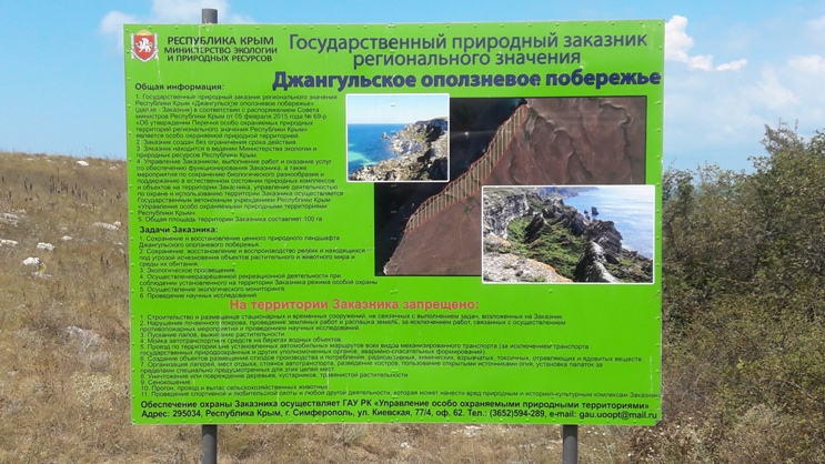 Главным шедевром урочища Джангуль, уникальным природным произведением всего Крымского полуострова является известняковая колонна. Она имеет высоту 40 метров и совершенно непостижимым образом сохраняет свое равновесие при любых погодных условиях. Колонна – это лишь малая часть Джангульского оползневого побережья, которое является заповедной территорией. В этом завораживающей своей самобытной красотой месте находится и одноименный заказник.