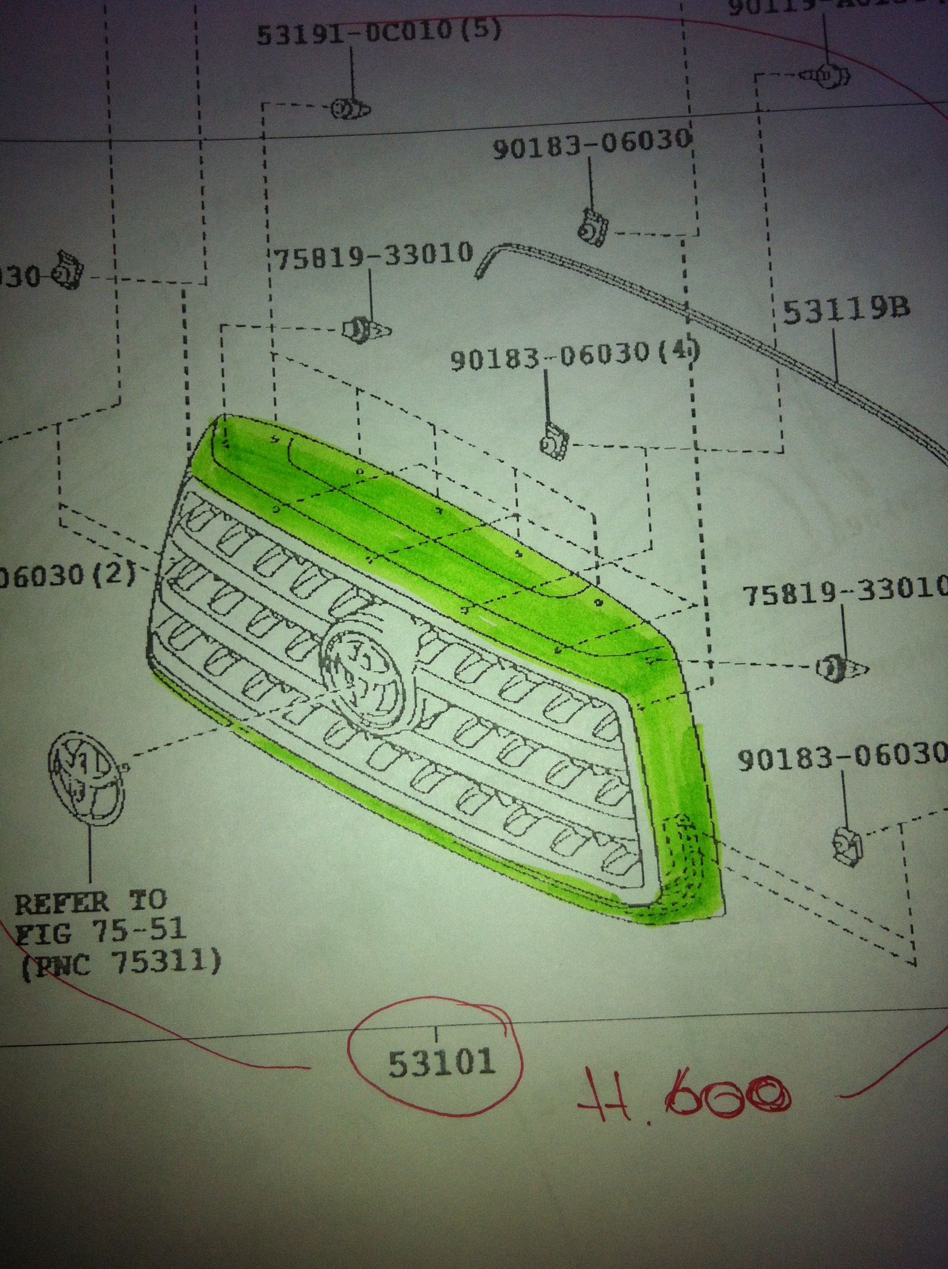 Смотрите на картинку то что выделенно зеленым например решетка с передка она находится на картинки в квадрате так вот Тойота продает все что в квадрате в комплекте