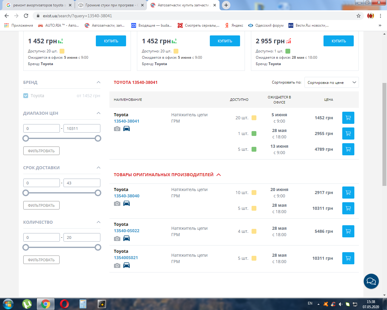 Натяжитель с новым номером 13540-38041 каталоги не дают заказывать.