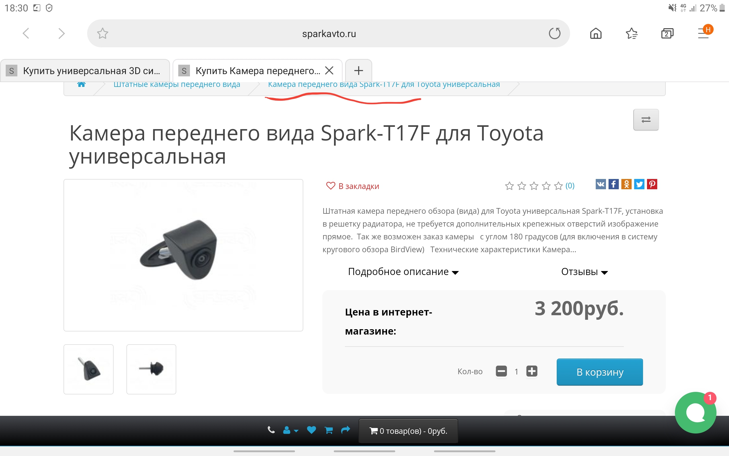 Необходимо выбрать камеру переднюю , я выбрал такую https://sparkavto.ru/shtatnye-kamery-pe ... oyota-spar k-t17f.