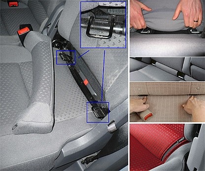 крепление для детских кресел. 2 скобы, находящиеся на стыке сиденья и спинки на кресле)