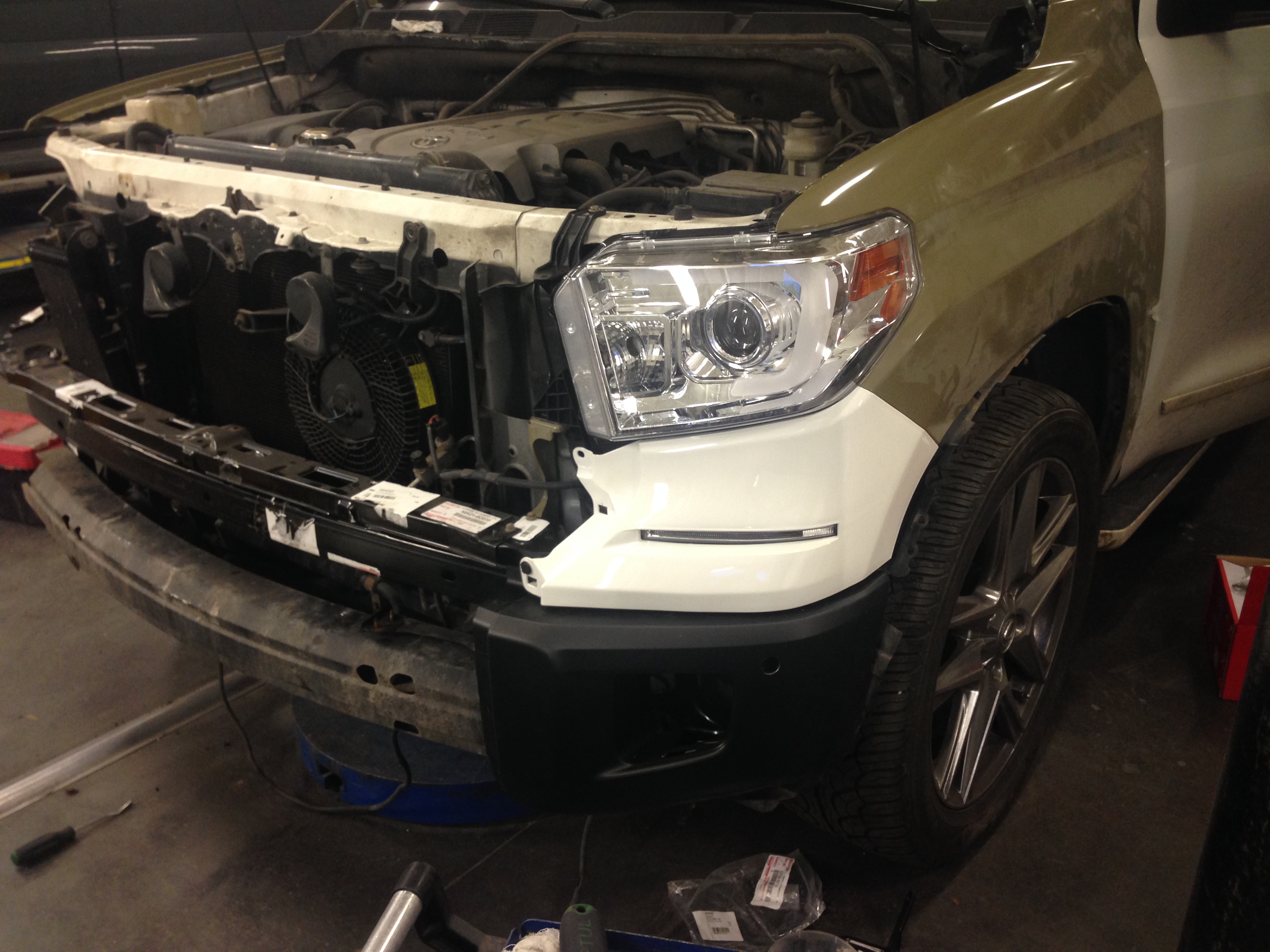 Конечно все будет разбираться , краситься и ставиться обратно . Сейчас процесс подгонки всех зазоров + сварочные работы ( хотя они и минимальные от них не куда не денишься ) . Т.к. это первая машина в Украине , все приходиться придумывать находу , смещать радиатор коробки , подрезать крепление бампера под дистроник ( глаз лазерного круиза , его то на Тундрах не бывает ). Опять не понятно пока что с подкрылками , форма крыла немного изменена , НО я планирую оставить расширители крыла . Ну вообщем работы кепят . :DNikola 1 писал(а):Красить новые детали будешь на машине или опять все разбирать?4wd-centr писал(а):Наконец приехали два кранштейна недостоющих . Работы продолжаются , к понидельнику обещают все собрать . Пока как то так .