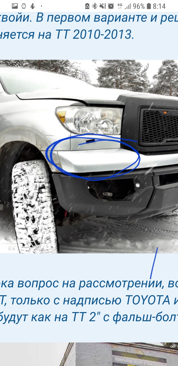Oleg555 писал(а):Сейчас как раз в работе Секвойя с установкой переднего композитного бампера. Бампер разрабатывался для установки на Тойота Тундра (ТТ), как второго 2007-2013 так и третьего 2014+ поколения. На Секвойе установка предполагает монтаж верхней пластиковой части бампера от ТТ 2007-2013 или обрезки верхней части оригинала Секвойи. В первом варианте и решетка радиатора меняется на ТТ 2010-2013.