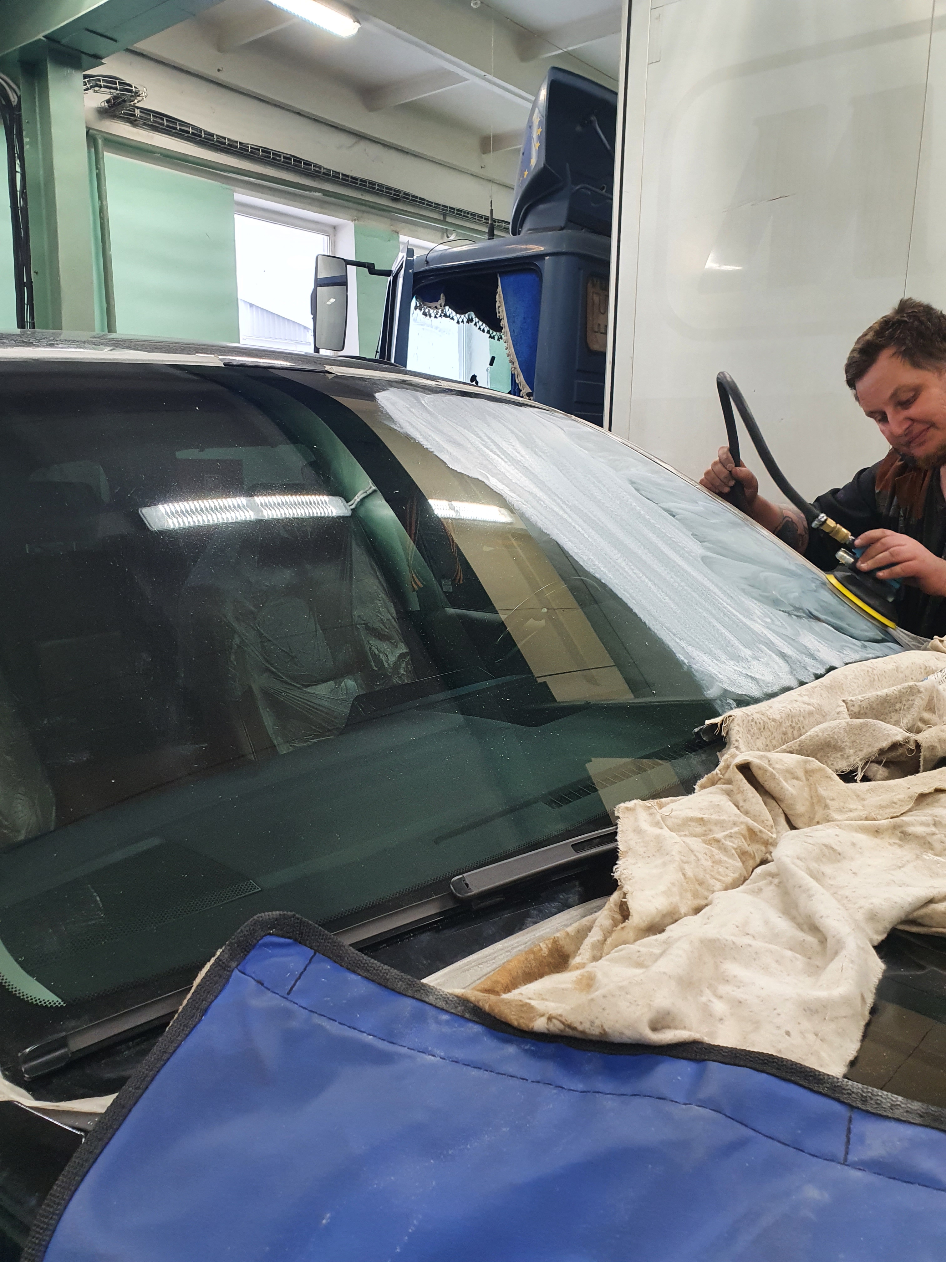 Крепко напрягали потёртости от дворников на лобовом стекле, - днем еще ладно, но ночью на трассе крайне неприятно! Менять оригинальный лобаш на китайский не захотел, поэтому решились на экперимент.